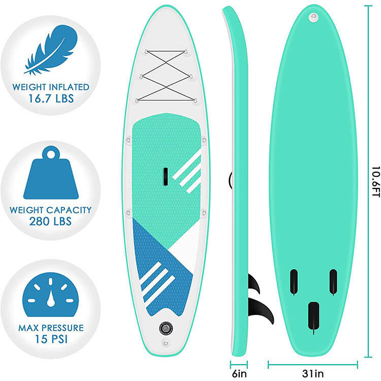 - [Ασφάλεια και σταθερότητα] - αυτή η διογκώσιμη στάση επάνω στον πίνακα κουπιών περιλαμβάνει τα τριπλά πτερύγια κατώτατης επιτροπής και ένα αντιολισθητικό μαξιλάρι γεφυρών της EVA που βελτιώνει τη σταθερότητά της και που καθιστά το εύκολο να οδηγήσει. Το paddleboard τόσο μεγάλο όπως 10 " 6 ' *31 " “*6” “, ικανότητα ρουλεμάν τόσο υψηλή όπως 280 λίβρες, και σχοινί ασφάλειας για τους αστραγάλους μπορεί τέλεια να εγγυηθεί τα ασφαλή και σταθερά ταξίδια σας.