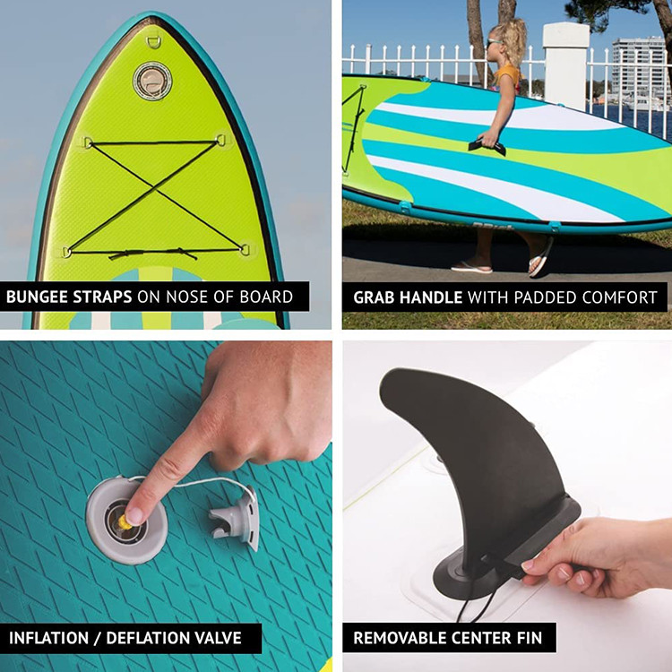 - ΠΛΗΡΗΣ ΕΞΆΡΤΗΣΗ PADDLEBOARD: Έρχεται με όλα τα ουσιαστικά εξαρτήματα πινάκων κουπιών, συμπεριλαμβανομένου του μετακινούμενου πτερυγίου, της εξάρτησης επισκευής, της διευθετήσιμης αντλίας χεριών κουπιών αργιλίου, πινάκων κουπιών, και της φέρνοντας τσάντας σακιδίων πλάτης και υποστηρίζει μέχρι 100 λίβρες.